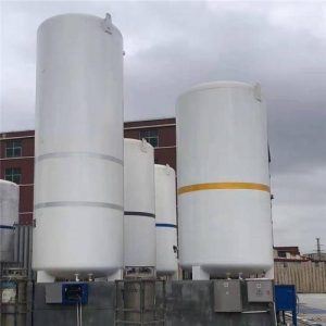 為了最大程度地減少熱傳遞并維持極低的溫度,必須對存儲容器進行專門設計。液態氧,液態氮和液態氬的存儲容器在市場上可以買到,容量從5m3到150立方不等。儲存容器可以是垂直的,球形的或水平的,具體取決于低溫散裝罐的位置和消耗要求。